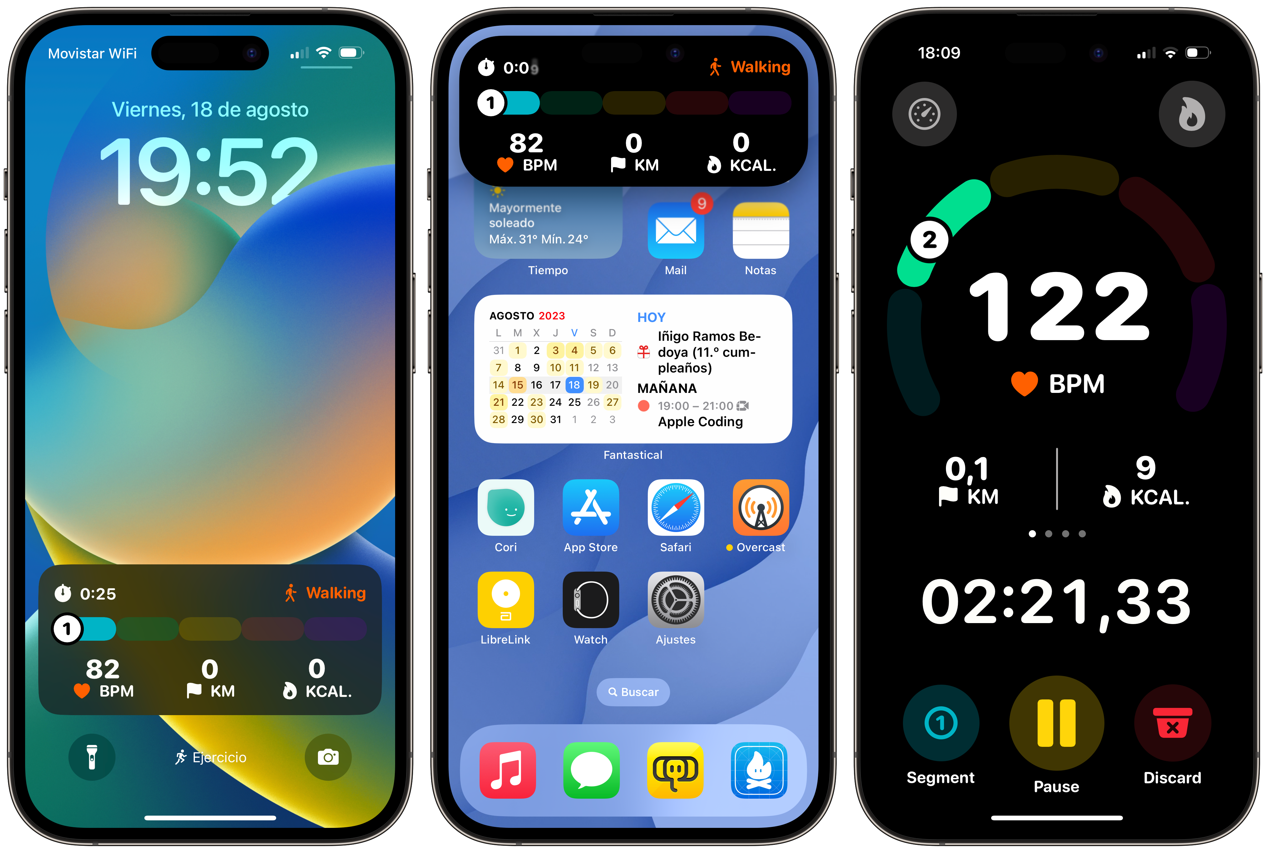 Since last year, both the Workout app and FitWoody allow you to use the iPhone as a cycling computer. You just need to place it on the handlebar, and once you start the workout, the Apple Watch sends all the data to the phone so you can see it without letting go of the handlebar. And the best part is that it works both in a Live Activity and in the app. So you can have your phone locked or unlocked.